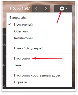 3.1. Зайдіть на пошту Gmail. Натисніть на іконку налаштувань у верхньому правому куті, виберіть розділ “Налаштування” зі списку.