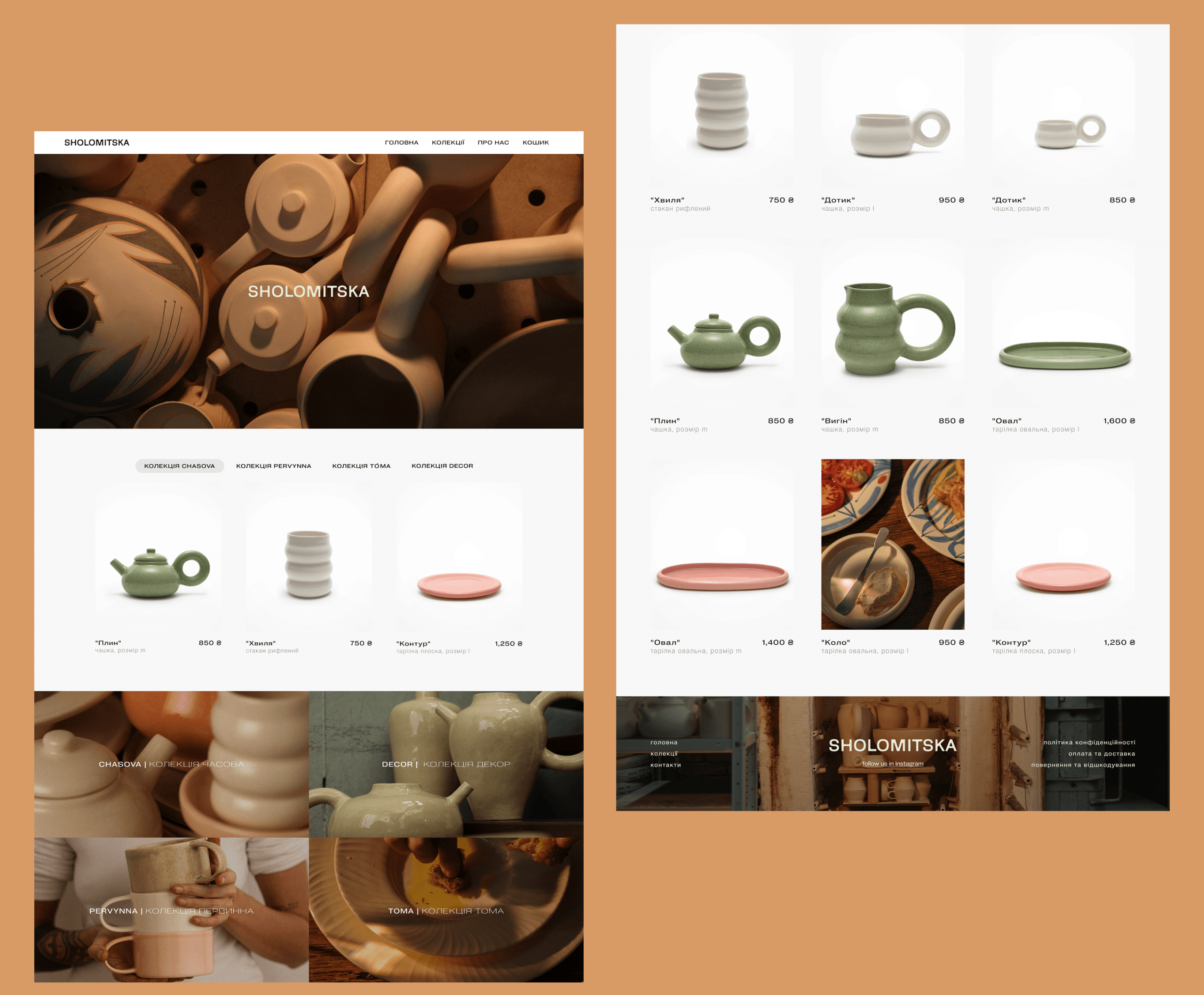 Turnkey development of a Shopify online store for SHOLOMITSKA, a brand that creates handmade ceramic pieces.